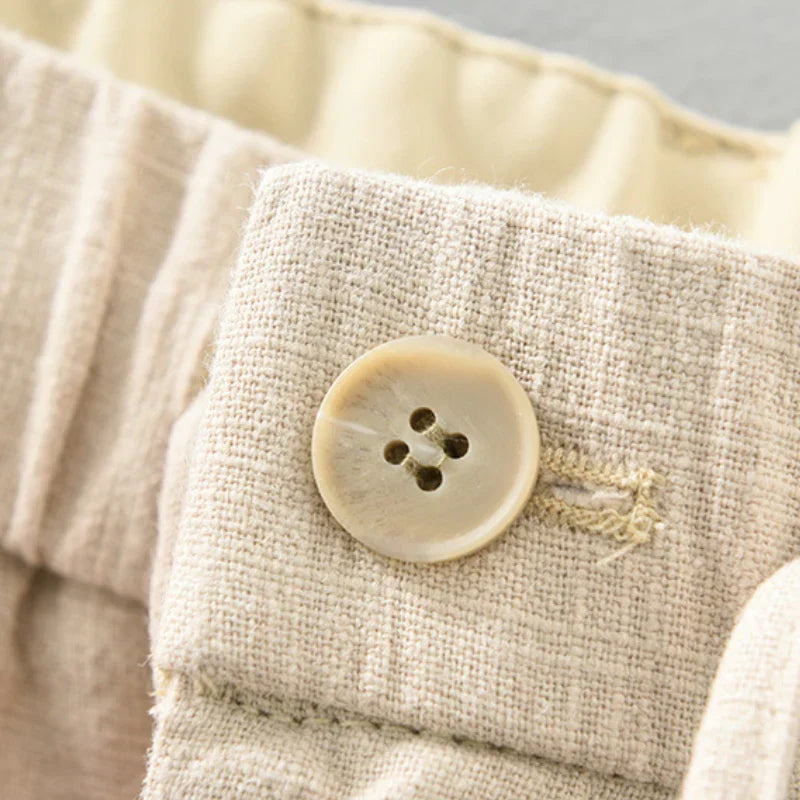 Questi non sono solo pantaloni: sono la tua fuga quotidiana da jeans rigidi e pantaloni formali. Questi pantaloni combinano la freschezza traspirante del lino con la morbidezza del cotone in un tessuto progettato per mantenerti fresco sotto pressione.